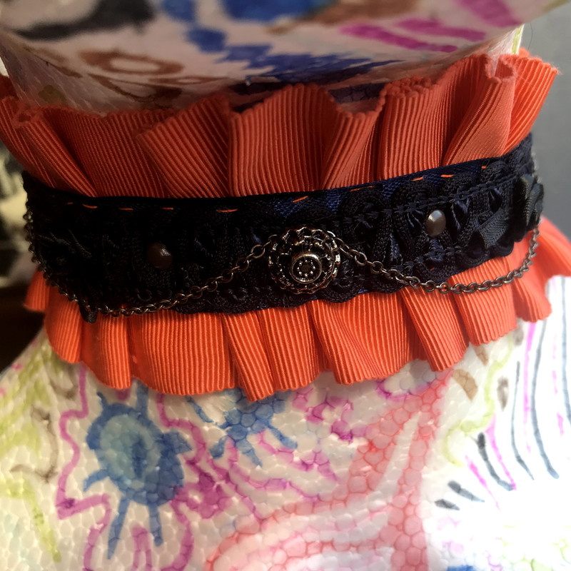 Ribbon choker with metal decorations and chains