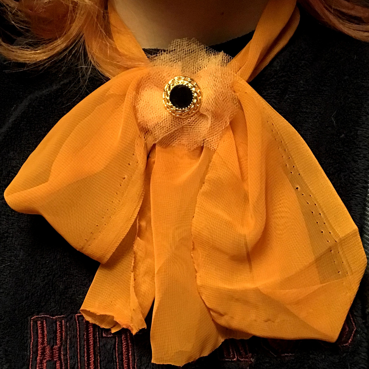 Retro transparent orange bow with a metal broach in the centre