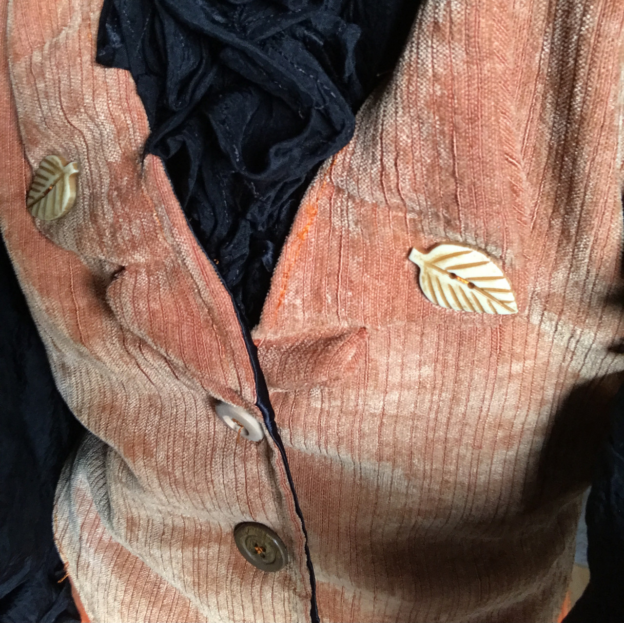 Brown corded vest with leaf buttons